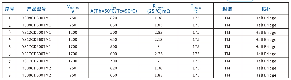 元山電子提供TM系列產(chǎn)品,該系列產(chǎn)品主要規(guī)格有750V/1200V/1700V、500ARMS~800ARMS;采用全SIC功率芯片:半橋封裝,具有高效、高功率密度、低雜散電感等優(yōu)點(diǎn)。