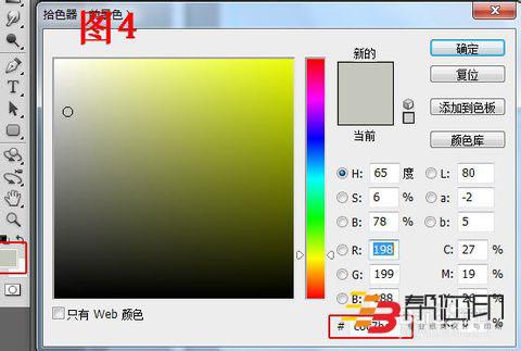 4、 設(shè)置前景色顏色為灰色(C6c7bc),如圖4所示。