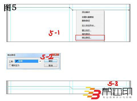 5、 設(shè)置鉛筆筆觸的大小為5.然后用鋼筆工具畫出如圖5中(5-1)所示的路徑,然后右擊鋼筆工具選擇“描邊路徑”,在彈出的對話框中選擇“鉛筆”如圖(5-2),然后點擊確定,描邊路徑后的效果如圖(5-3)所示。